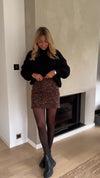 The Leopard Hopa Skirt features a suede-effect fabric with a bold leopard print, offering a soft feel and stylish texture. This short skirt is unlined, slightly fitted, and made from a stretch material for comfort and ease of movement. Finished with a discreet side zipper for a smooth look.
