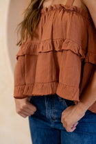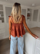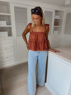 The Brick Malvy Top brings effortless charm with its adjustable tie straps and straight neckline. A soft ruffle detail adds a feminine touch, while the lined, non-transparent fabric keeps it both chic and practical. With its fluid, slightly loose fit, this top is perfect for warm days and easy layering.
