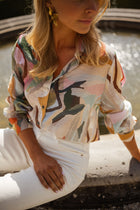 The Patterned Babou Shirt features a classic shirt collar, long sleeves, and a button-up silhouette. Made from fabric with abstract patterns, each piece is unique depending on the cut, making every shirt subtly one of a kind.
