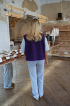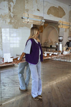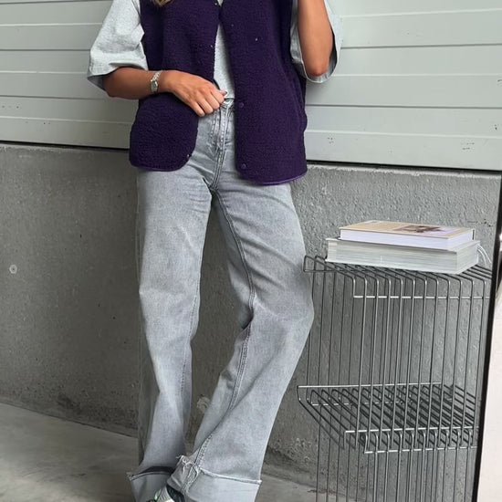 Make a statement in the Purple Kara Vest. Made in Italy, it features a shearling-effect fabric, sleeveless cut, and slightly cropped, relaxed fit with front pockets, it’s the perfect layer to add texture, warmth, and a pop of color to your wardrobe.