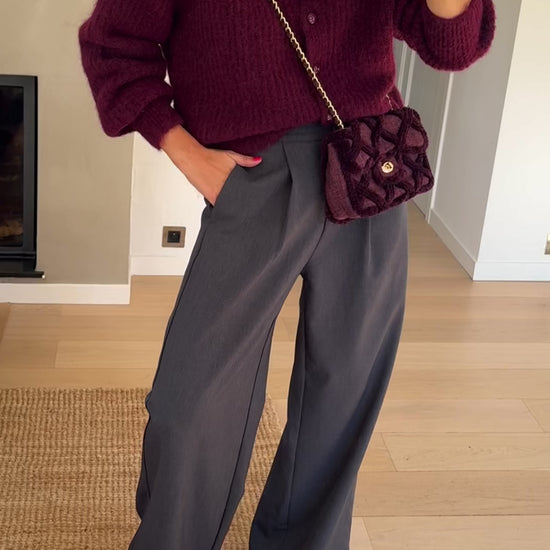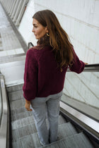 Stay cozy and chic with the Burgundy Elony Cardigan. Designed with a classic round neckline and long sleeves, this soft and warm knit features a button-up silhouette for a touch of versatility. A timeless layer that pairs effortlessly with any outfit.