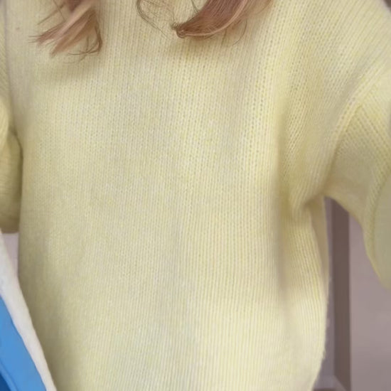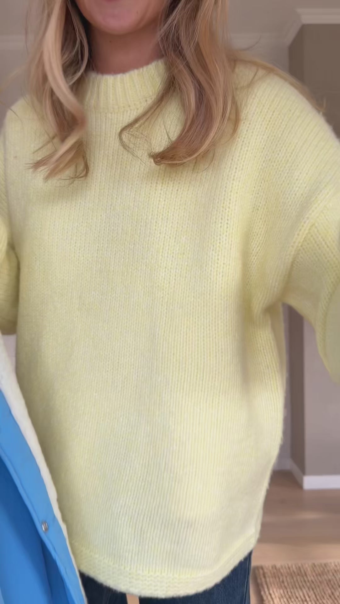 - Our models are also wearing the Yellow Elisa Sweater and the Blue Guetta Jeans