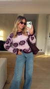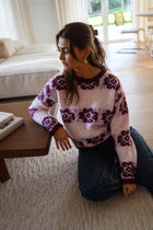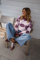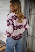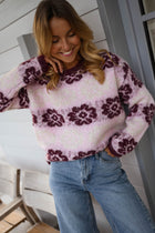 The Pink and Burgundy Nesta Sweater combines softness with vibrant style. Crafted with long sleeves and a classic crew neck, its striking floral patterns bring energy and elegance to any look.