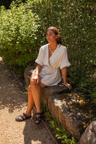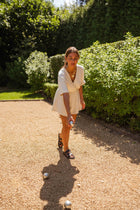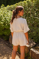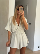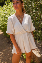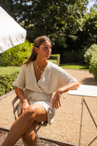 Crafted in Italy from soft, breathable cotton gauze, the Beige Noah Jumpsuit is the perfect blend of comfort and ease. With short sleeves, a gently elasticated waist, and a relaxed, fluid cut, this romper is ideal for effortless, everyday wear on warm days.