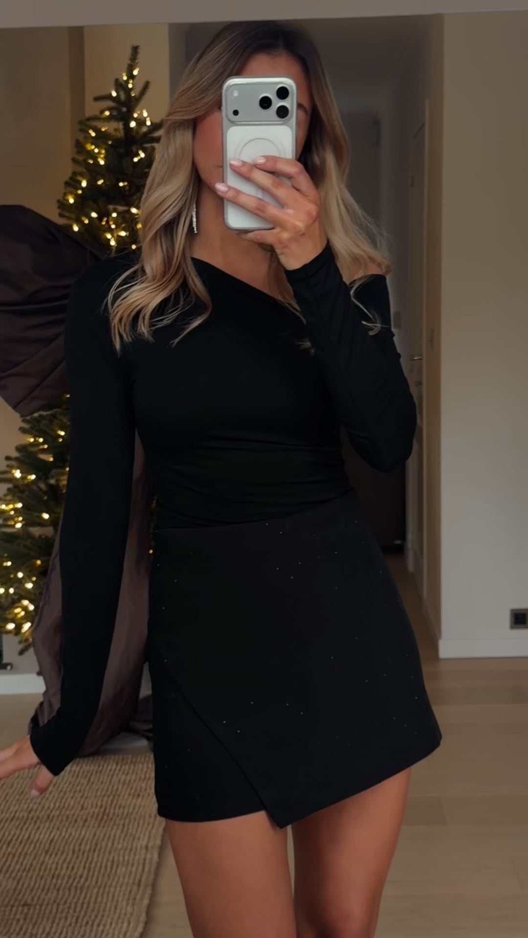 Step into sleek style with the Black Astra Skort. Designed as a chic skort adorned with scatered rhinestones, it combines the ease of shorts with the polished look of a skirt. Perfect for pairing with blouses, sweaters, or statement tops, it’s a versatile piece for both casual outings and evening looks.