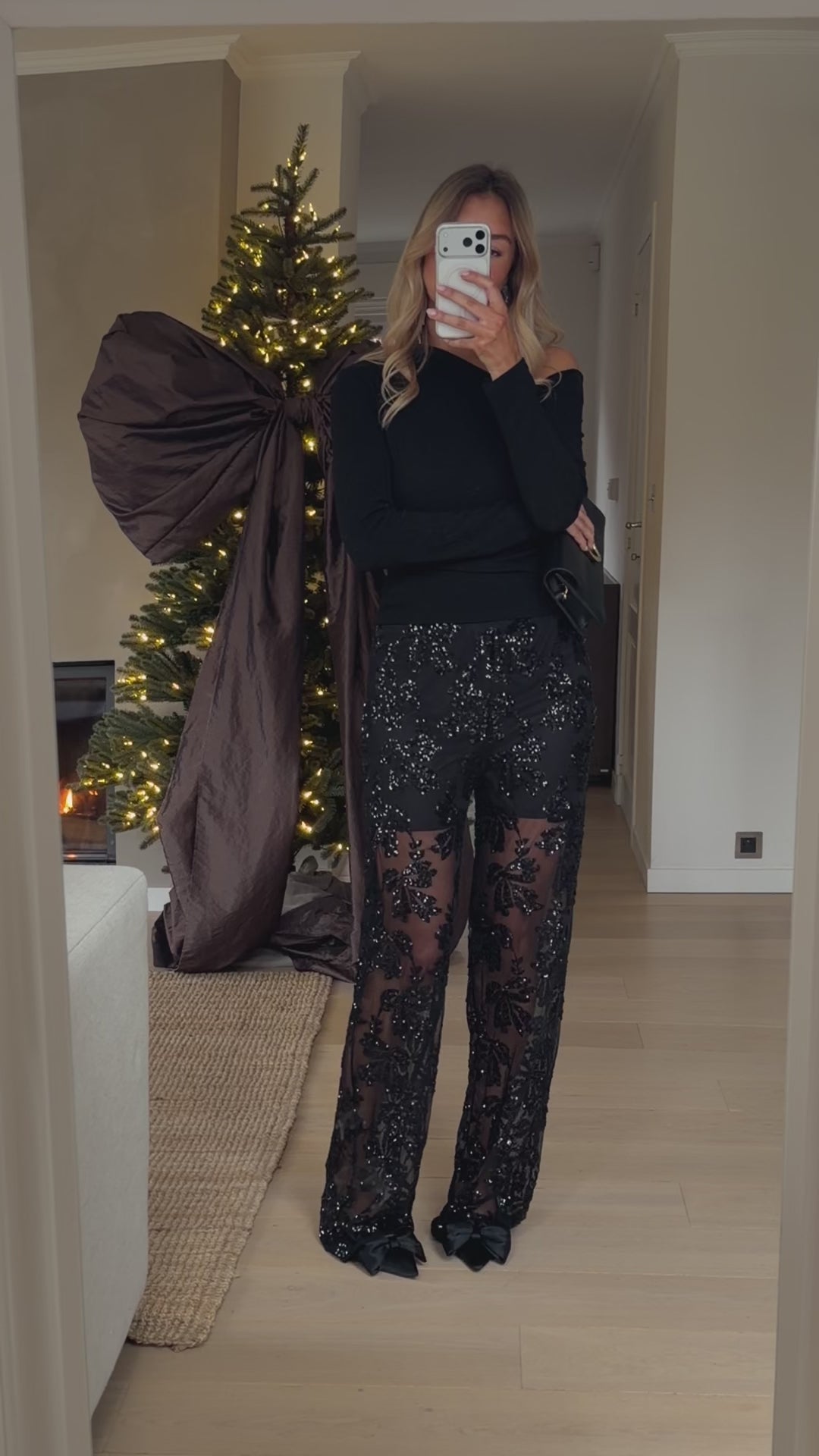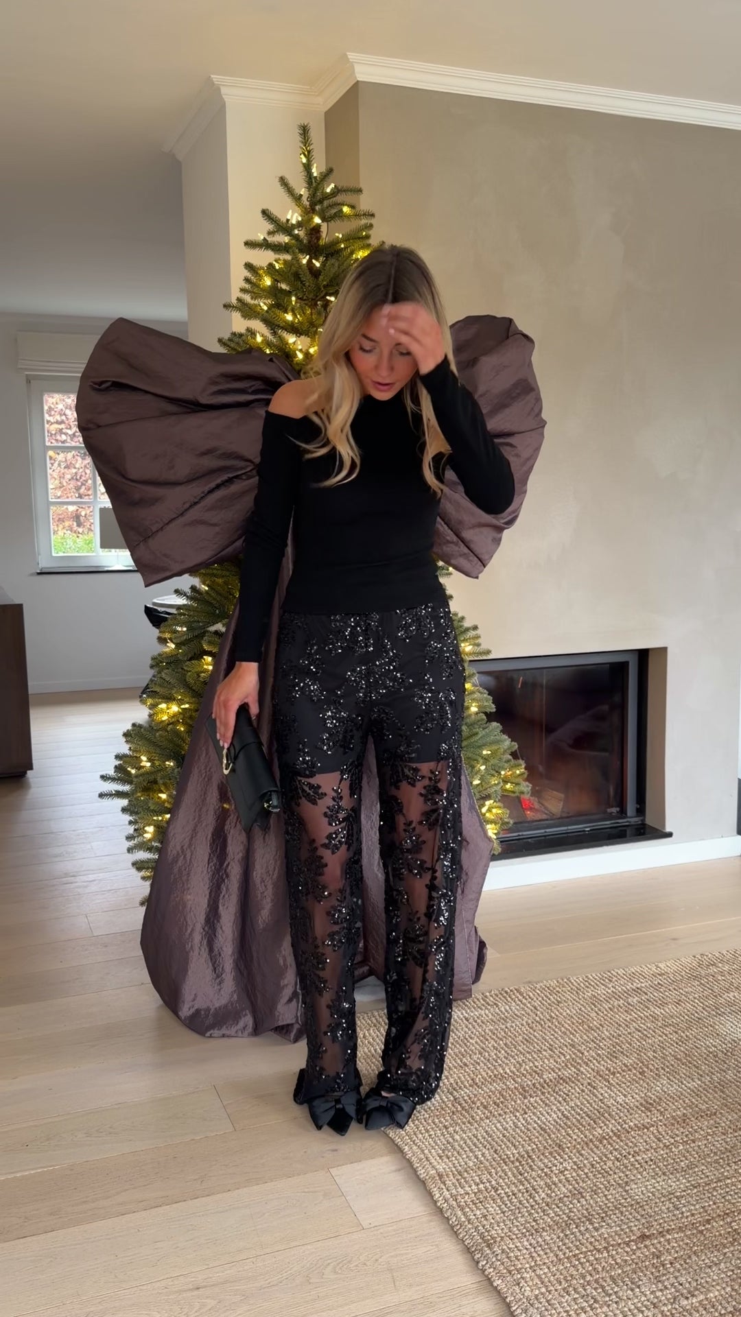 Stand out in the Black Maud Pants, crafted with sparkling sequins for a bold, statement-making look. Designed with a short lining for comfort, these pants combine glamour and ease, perfect for evening events or festive occasions.