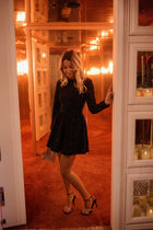 Meet your new go-to party piece: the Black Thelia Dress. This skater-style dress shines all over, bringing a subtle sparkle to every movement. Designed with long sleeves, a classic crew neck, and a slightly thick fabric, it offers both comfort and structure. The waist is gently tightened for a flattering silhouette, while the back zipper ensures easy dressing. Perfect for evenings out, celebrations, or any moment you want to feel confident and stylish.