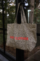Stand out with the Leopard Easy Clothes Tote Bag. Featuring a bold leopard print and the EASY CLOTHES logo in vibrant red, this rectangular tote adds a playful yet chic touch to any outfit—perfect for carrying your everyday essentials in style.