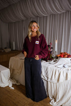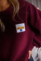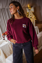 Cozy meets casual with the Burgundy Gaella Sweater. Crafted in soft “fleece” effect material, it features a classic crew neck, long sleeves, and a relaxed, slightly loose fit. A subtle label on the chest adds a modern touch to this everyday essential.