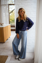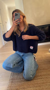 The Blue Sassi Sweater is a relaxed essential designed for everyday comfort. Featuring a flattering V-neck, long sleeves, and a slightly loose fit, it’s finished with a subtle label at the bottom for a casual touch. Easy to style and perfect for layering, this sweater works effortlessly with jeans or skirts.