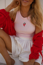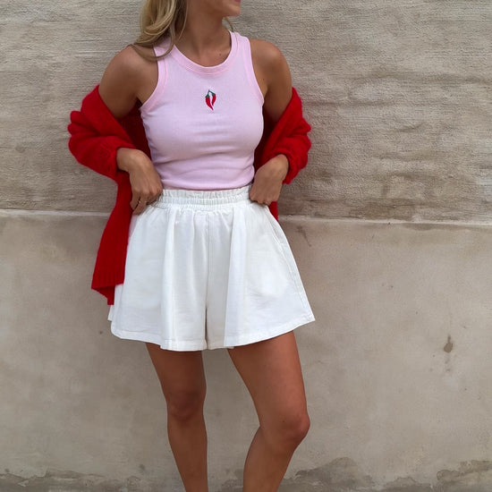 - Add a hint of spice to your everyday look with the Pink Carlos Top. Featuring a crewneck and a playful embroidered chili pepper logo, this fitted tank brings character and charm to even the simplest outfit. Its snug cut makes it ideal for pairing with high-rise bottoms or layering under jackets.