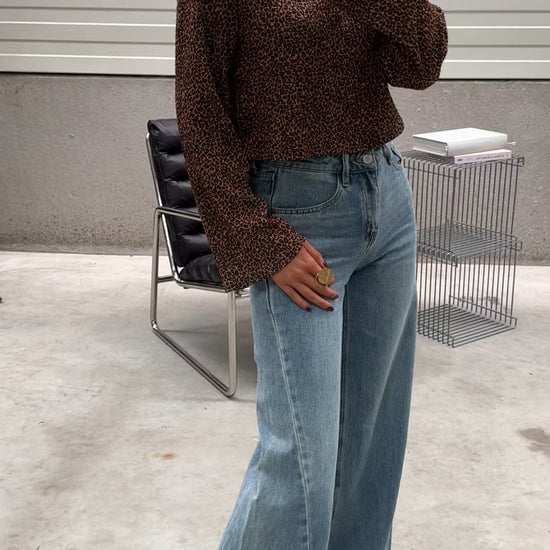Bring a bold touch to your wardrobe with the Leopard Analy Blouse. Designed with a round neck and long, slightly flared sleeves, this unlined blouse offers a flattering, slightly short cut that pairs perfectly with high-waisted bottoms. Effortless, chic, and full of personality.
