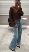 - Our models are also wearing the Blue Guetta Jeans, the Plum Jayde Cardigan, and the Blue Diego Jeans
