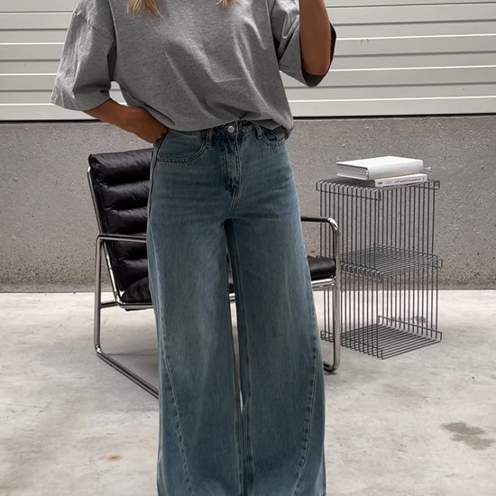 Meet your new denim favorite—the Blue Guetta Jeans. Designed with a wide-leg cut and a slightly loose fit, these jeans combine comfort with effortless style. Featuring front and back pockets, belt loops, a button and zipper closure, and a chic seam detail at the bottom for that modern touch.