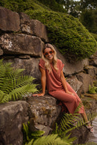 The Brick Lyana Dress blends casual charm with comfort. Made from a soft, non-transparent fabric, it features a round neck and twin slits at the hem. Its fluid shape makes it perfect for laid-back days.