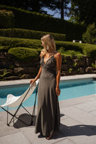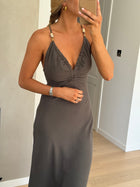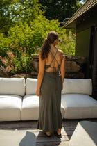 The Khaki Coco Dress blends a breezy linen blend fabric with eye-catching beaded straps. Featuring an open back, back ties, and a flattering V-neck, it's a chic and easy choice for sun-soaked days.