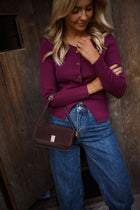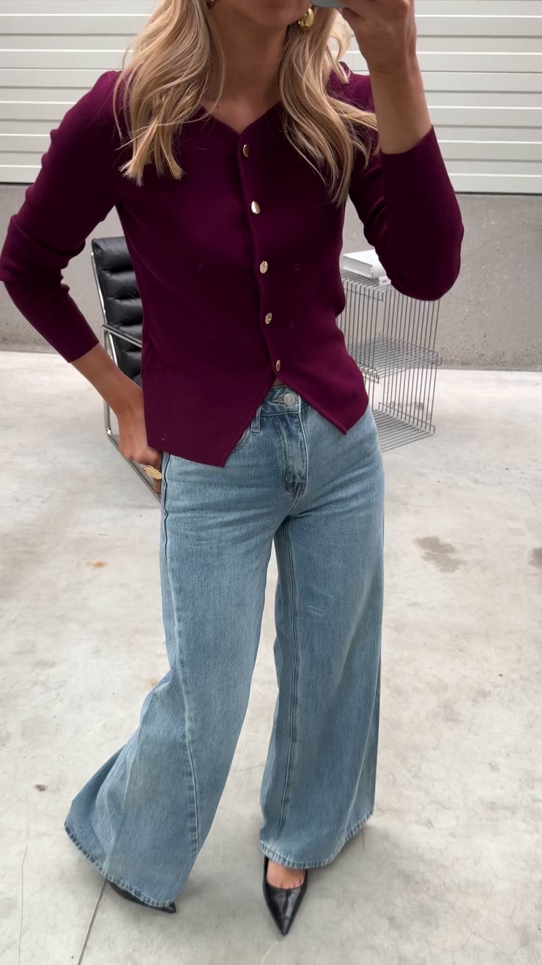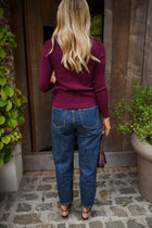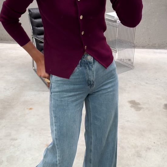 Refresh your wardrobe with the Burgundy Haby Sweater. Designed with a slim fit and a classic round neck, it’s detailed with gold buttons throughout for a chic, refined touch—perfect for both casual and dressed-up looks.