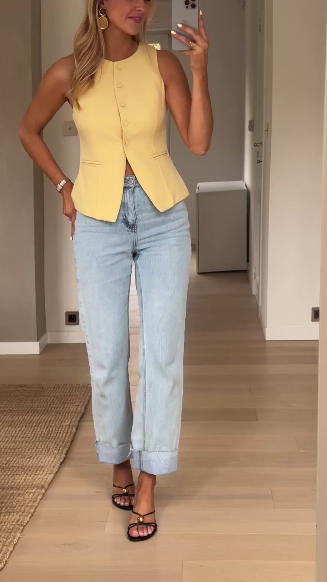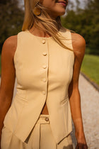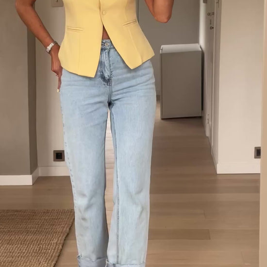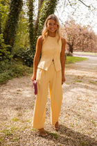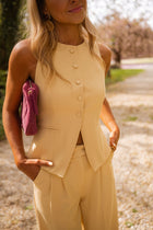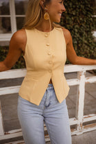 Brighten up your look with the Yellow Ottel Top—a sleeveless essential with clean lines and standout simplicity. This button-up vest features a light lining and subtle structure while its slightly fitted cut flatters your silhouette. Easy to style, bold to wear.