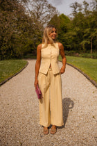 Elevate your everyday style with the Yellow Pola Pants. Featuring a flattering high-rise waist, classic button and zipper closure, and a straight-leg cut, these pants bring a bold yet refined edge to your look.