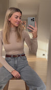 - Introducing the Beige Tuky Sweater - an ultra stylish, mockneck top with long sleeves that hugs your body in all the right places. Experience the luxurious feel of this must-have piece and elevate your look to new heights!