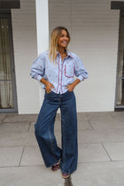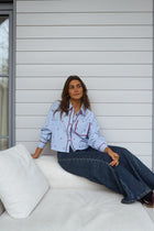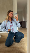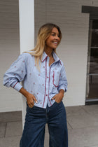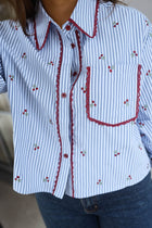 Playful details meet everyday ease in this striped essential, featuring blue and ecru lines brought to life with embroidered cherry motifs across the front and sleeves. Front pockets add a casual, functional touch, while the slightly shorter cut keeps the silhouette fresh and easy to style. Made in Italy, it’s a lighthearted piece that adds personality without trying too hard.
