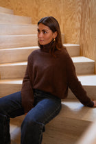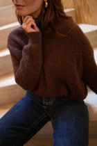 The Brown Mara Sweater combines cozy warmth with a modern silhouette. Crafted from soft, insulating fabric, it features a high collar and long sleeves to keep you comfortable on colder days. The slightly cropped front adds a contemporary twist, making it perfect for layering or pairing with high-waisted bottoms for a chic, effortless look.