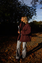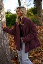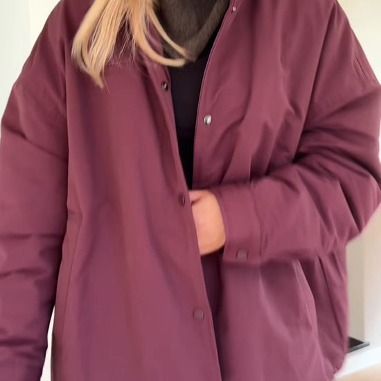 Stay stylish and protected with the Burgundy Clio Coat. This loose-fitting, waterproof coat features a convenient zipper and practical side pockets, combining comfort and functionality. Perfect for layering over casual or everyday outfits, it’s a versatile piece for rainy or chilly days.