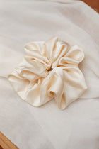 Elevate your everyday hairstyles with the Ecru Grela Scrunchie. Featuring a luxurious silk-effect finish in a soft ecru shade, this large scrunchie adds a refined touch to ponytails, buns, or wrist wear. Its comfortable elastic ensures a secure yet gentle hold all day long