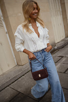 The Ecru Larissa Shirt is a beautifully feminine piece crafted from airy cotton gauze for a light and effortless feel. Designed with delicate embroidery on the front, this blouse is elevated by soft ruffle details on the collar and sleeves, adding a romantic touch to its timeless silhouette. Finished with long sleeves and detachable buttons, it’s the perfect blend of charm and versatility—easy to dress up or down for an effortlessly polished look.