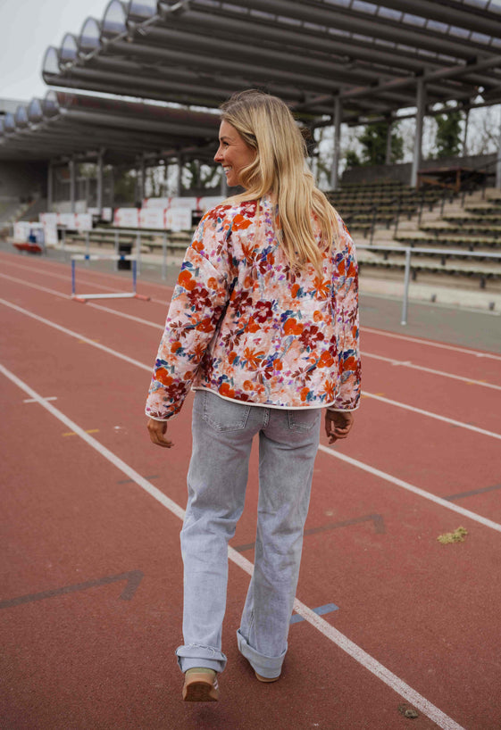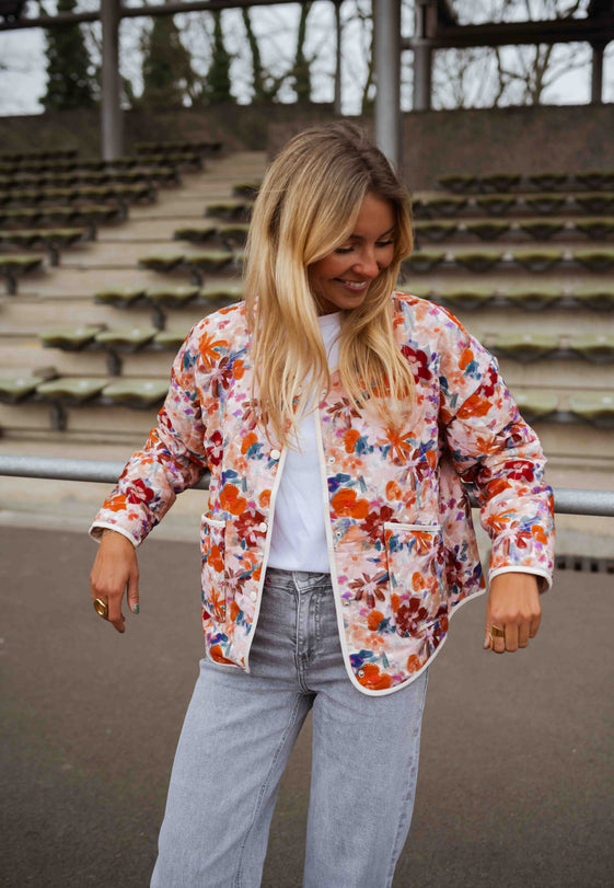 - Embrace vibrant style with the Floral Julie Jacket. Featuring a stunning floral pattern, this jacket boasts long sleeves and practical side pockets for added convenience. The snap buttons add a sleek touch, making it the perfect mix of fashion and function for any occasion.