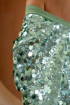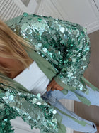 Shine bright in the Green Hannah Cardigan, crafted in Italy with sequins that catch every light. Featuring long sleeves, a wrap effect, and a tie fastening, this slightly loose-fitting cardigan combines glamour with effortless comfort—perfect for layering over day or evening outfits.