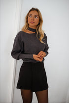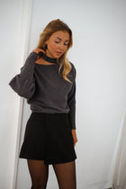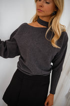 Effortless and modern, the Grey Aiko Sweater features an open collar with a hint of bare-shoulder detail. Its long sleeves and slightly fitted silhouette create a flattering, wearable look, making it perfect for casual outings or layered for a chic, contemporary style.