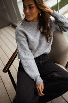 Wrapped in a soft, heat-retaining knit, the Grey Elga Sweater is made for chilly days when comfort comes first. Its classic crew neckline keeps the look clean and versatile, while long sleeves provide full coverage and warmth. The cozy texture feels gentle against the skin, making it an easy go-to for everyday wear, whether styled casually or layered up.