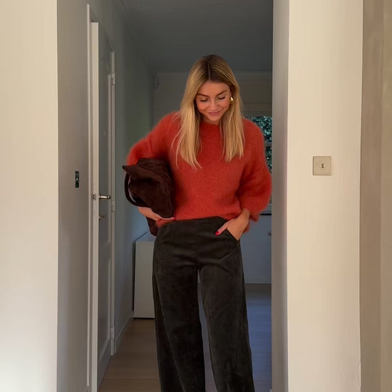 Brighten your wardrobe with the Orange Samia Sweater. Made in Italy from a soft, cozy knit, it features a classic round neckline and chic ¾ sleeves. Effortlessly stylish and comfortable, it’s the perfect piece to bring warmth and color to your everyday looks.