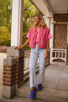 - Our model is also wearing the Pink Jane T-Shirt and the Light Blue Maddie Jeans