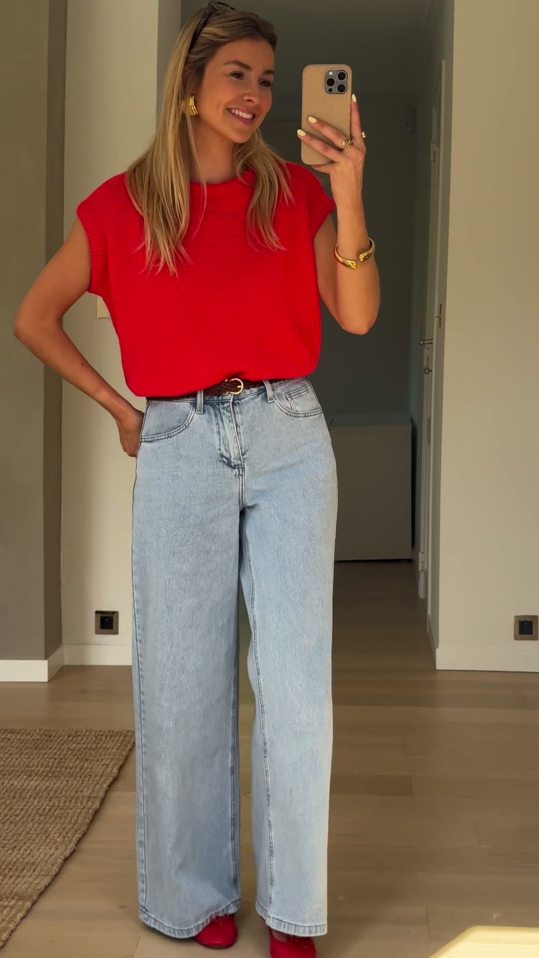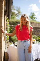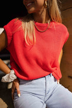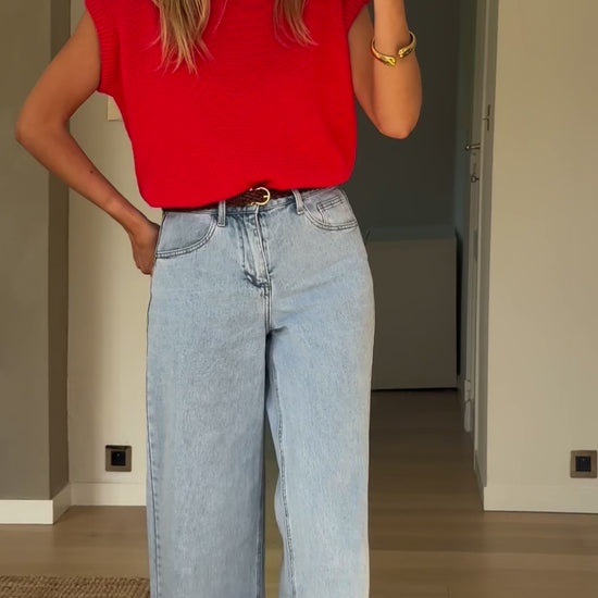 Bold and minimalist, the Red Kathia Sweater offers a sleek sleeveless design with a classic crewneck. Perfect for layering or wearing on its own, this vibrant piece adds a pop of color and effortless style to your wardrobe.