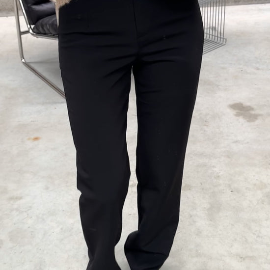 Refined and timeless, the Black Joby Pants are a wardrobe essential. Made in Italy, these high-waisted, straight-leg pants offer a fitted silhouette for a polished look. Finished with belt loops and a button-and-zipper closure for classic, effortless style.