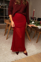 - The Burgundy Siskou Skirt combines sophistication with charm. Featuring intricate lace and a mini skirt lining, this maxi skirt offers both elegance and comfort. The elastic waist ensures a perfect fit, making it a versatile piece for both day and evening wear.