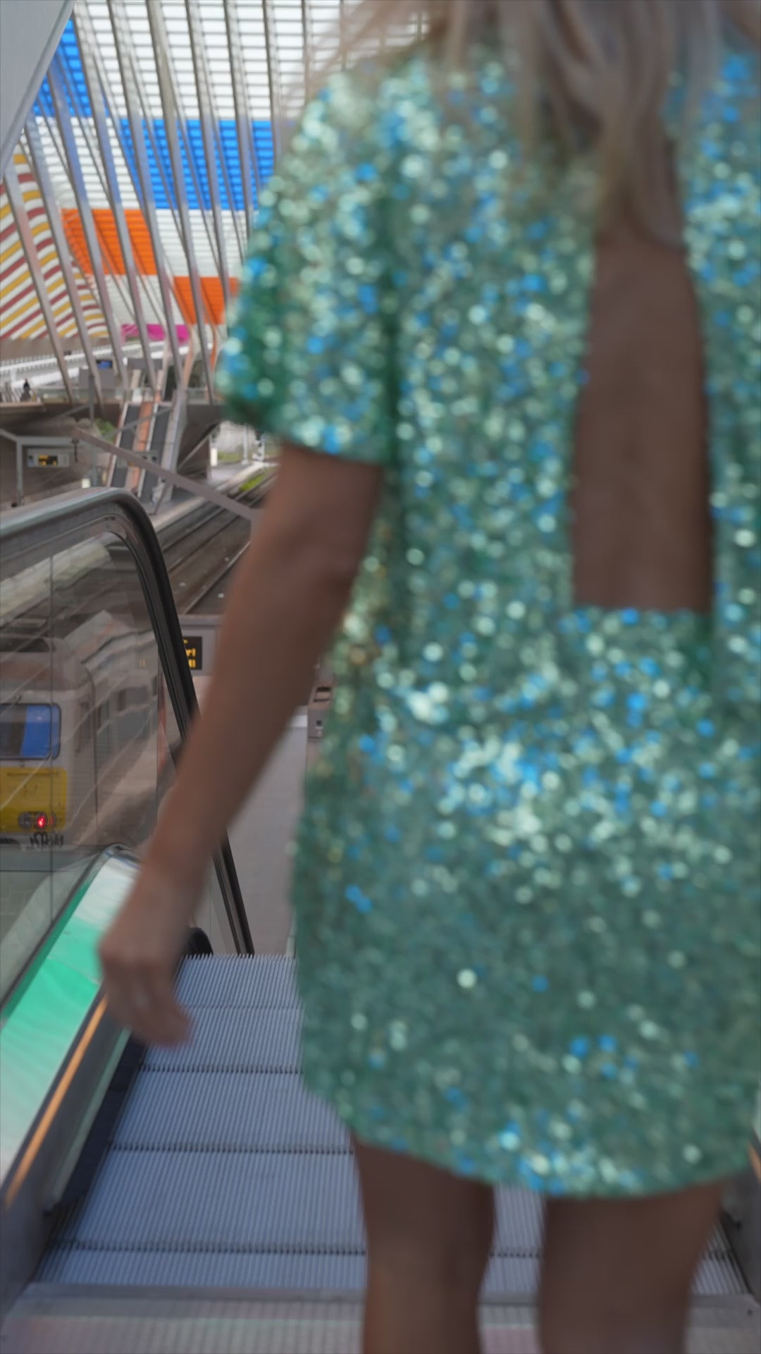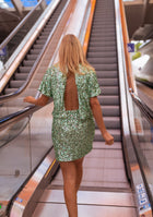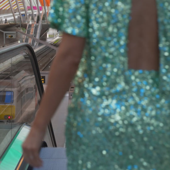 - Green glittery mini skirt that has a mini slit on the side additionally has lining so it is not sheer. This skirt is the 'main character' this spring and summer! So easy to dress up or down with any tops including our matching Belita Blouse!