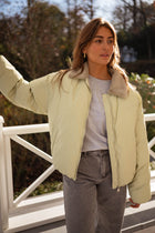 - Indulge in the cozy comfort of Green Amista Coat, featuring long sleeves, a luxurious faux-fur collar, and convenient front pockets. Keep warm and stylish in this must-have cold weather essential!