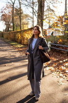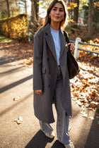 - Stay effortlessly stylish with the Grey Zena Jacket. Featuring a timeless long design, side pockets, and a button-front closure, this jacket is fully lined for added warmth and comfort. A versatile layer for cooler days.