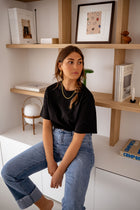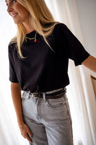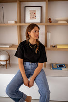 - Effortless and versatile, the Black Jane T-Shirt is a wardrobe essential. Featuring a classic crewneck and relaxed short sleeves, its slightly loose fit offers all-day comfort with a timeless appeal. A perfect staple to complement any outfit.