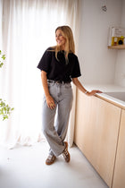 - Our models are also wearing the Light Grey Célestine Jeans, the Blue Maddie Jeans, and the Black Solya Belt