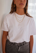 - This Golden Afif Necklace boasts a triple-row design made of durable stainless steel, featuring a lustrous golden finish. It is also adjustable, ensuring the perfect fit.