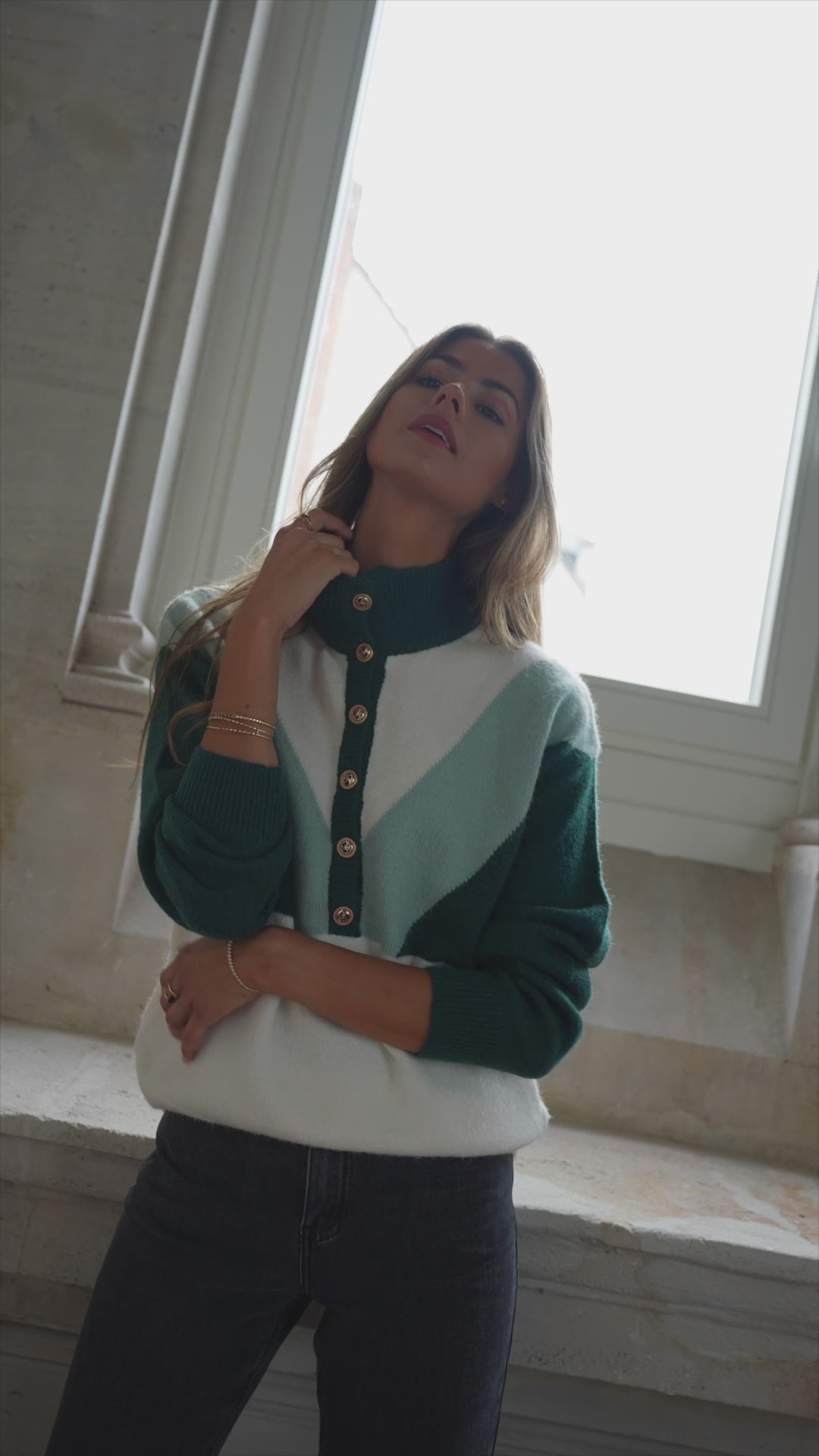 Green and Ecru Neve Sweater