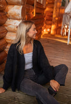 - Super soft and cozy black, long sleeve cardigan that has a looser-fit which makes it perfect for layering during those cold days/nights!
