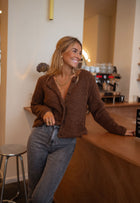 - This cozy cardigan, crafted with a soft sheep fur-effect texture, offers both style and comfort. With long sleeves and convenient front pockets, it’s perfect for staying snug while looking effortlessly chic. Elevate your seasonal wardrobe with this must-have layering piece!