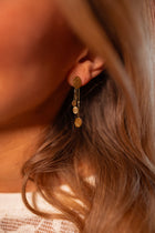- Classy golden earrings that feature mini dangle chains with round/oval pendants. These high-quality, stainless steel earrings are the perfect way to elevate any outfit no matter the occasion.