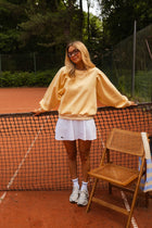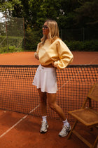 Bring a burst of sunshine to your wardrobe with the Yellow Pacome Sweater. Designed with a classic round collar and softly ballooned sleeves, it offers just the right balance of structure and softness. A cozy and cheerful piece for brightening up any day.