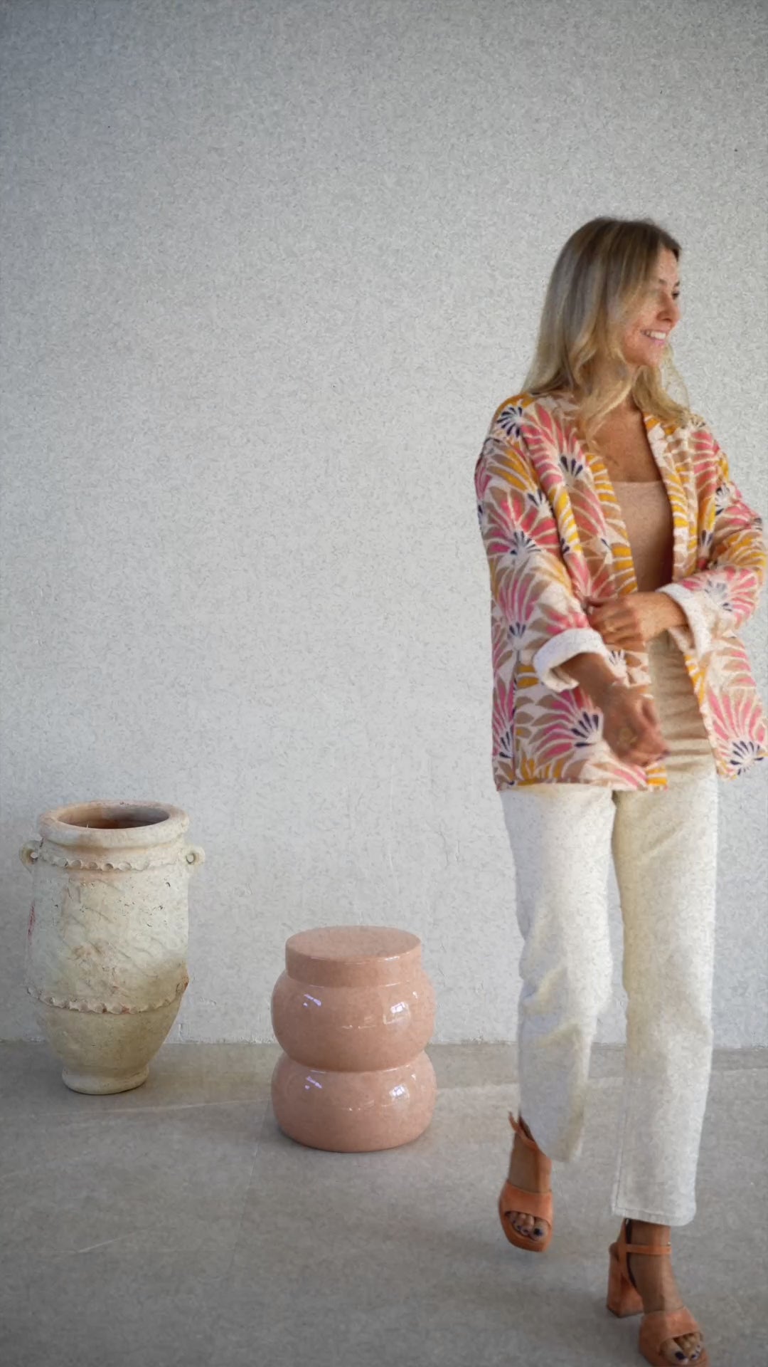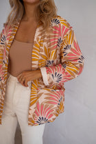 - Elevate your style with our patterned cotton jacket, featuring long sleeves, a lined interior, slightly loose fit, and front pockets for added convenience.